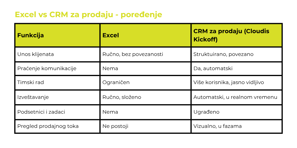 Kada Excel postaje problem? CRM za prodaju nije konkurent Excelu - on je njegov logičan nastavak.