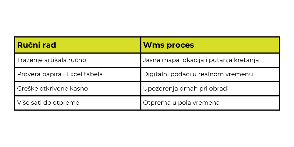 WMS ne znači da će ljudi nestati iz skladišta - znači da će im rad postati jednostavniji, pametniji i efikasniji.Ti dobijaš kontrolu i brzinu, a tvoj tim dobija jasne zadatke i manje stresa.
